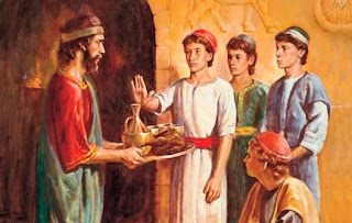 El rey les asignó una ración diaria de alimentos y de vino de su propia mesa. Deberían ser educados durante tres años y después entrarían al servicio del rey. Entre ellos se encontraban Daniel, Ananías, Misael y Azarías, que eran de la tribu de Judá.