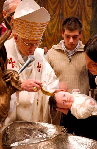 50. Terminado el interrogatorio, el sacerdote bautiza a los elegidos adultos y niños.