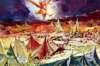 Aquella misma noche salió el ángel del Señor e hirió a ciento ochenta y cinco mil hombres en el campamento asirio. Por la mañana, al contemplar los cadáveres, Senaquerib, rey de Asiria, levantó su campamento y regresó a Nínive.