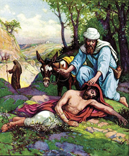 El doctor de la ley, para justificarse, le preguntó a Jesús: “¿Y quién es mi prójimo?” Jesús le dijo: “Un hombre que bajaba por el camino de Jerusalén a Jericó, cayó en manos de unos ladrones, los cuales lo robaron, lo hirieron y lo dejaron medio muerto. Sucedió que por el mismo camino bajaba un sacerdote, el cual lo vio y pasó de largo. De igual modo, un levita que pasó por ahí, lo vio y siguió adelante. Pero un samaritano que iba de viaje, al verlo, se compadeció de él, se le acercó, ungió sus heridas con aceite y vino y se las vendó; luego lo puso sobre su cabalgadura, lo llevó a un mesón y cuidó de él. Al día siguiente sacó dos denarios, se los dio al dueño del mesón y le dijo: `Cuida de él y lo que gastes de más, te lo pagaré a mi regreso’.