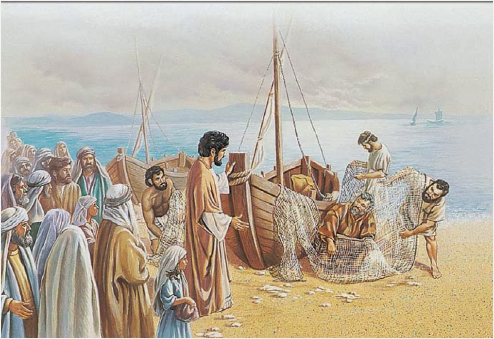 Una vez que Jesús caminaba por la ribera del mar de Galilea, vio a dos hermanos, Simón, llamado después Pedro, y Andrés, los cuales estaban echando las redes al mar, porque eran pescadores. Jesús les dijo: “Síganme y los haré pescadores de hombres”. Ellos inmediatamente dejaron las redes y lo siguieron. Pasando más adelante, vio a otros dos hermanos, Santiago y Juan, hijos de Zebedeo, que estaban con su padre en la barca, remendando las redes, y los llamó también. Ellos, dejando enseguida la barca y a su padre, lo siguieron.