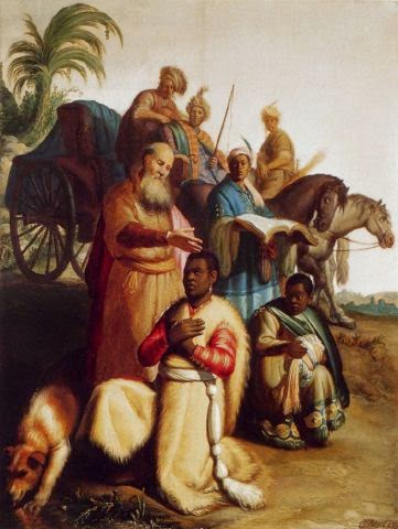 El etíope le preguntó a Felipe: “Dime, por favor: ¿De quién dice esto el profeta, de sí mismo o de otro?” Felipe comenzó a hablarle y partiendo de aquel pasaje, le anunció el Evangelio de Jesús. Siguieron adelante, llegaron a un sitio donde había agua y dijo el etíope: “Aquí hay agua. ¿Hay alguna dificultad para que me bautices?” Felipe le contestó: “Ninguna, si crees de todo corazón”. Respondió el etíope: “Creo que Jesús es el Hijo de Dios”. Mandó parar el carro, bajaron los dos al agua y Felipe lo bautizó. Cuando salieron del agua, el Espíritu del Señor arrebató a Felipe. El etíope ya no lo vio más y prosiguió su viaje, lleno de alegría. En cuanto a Felipe, se encontró en la ciudad de Azoto y evangelizaba los poblados que encontraba a su paso, hasta que llegó a Cesárea.